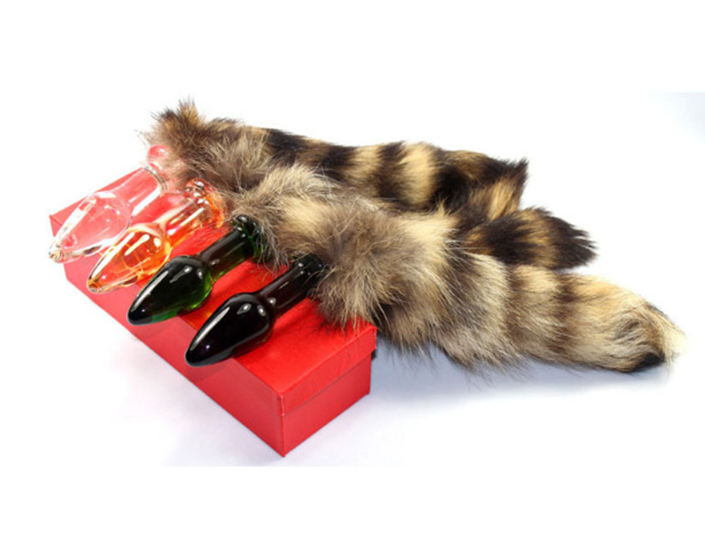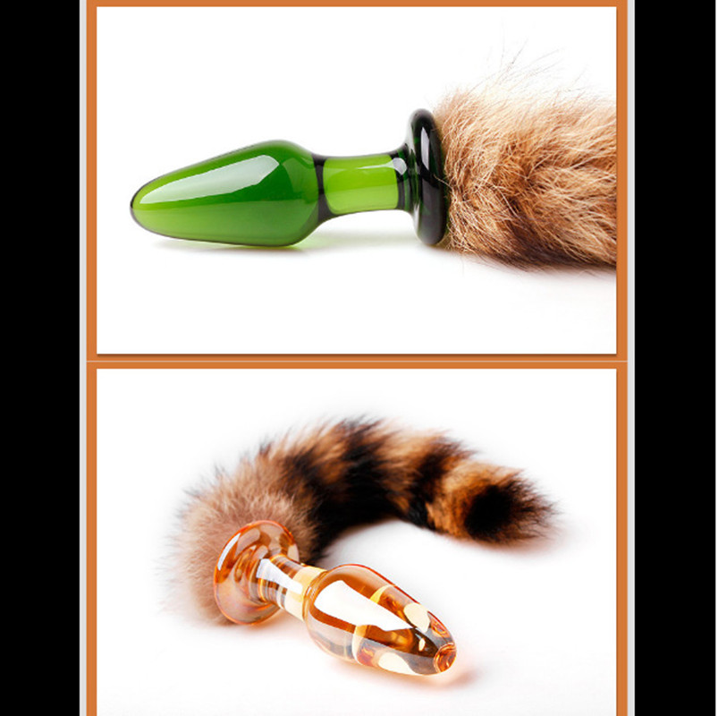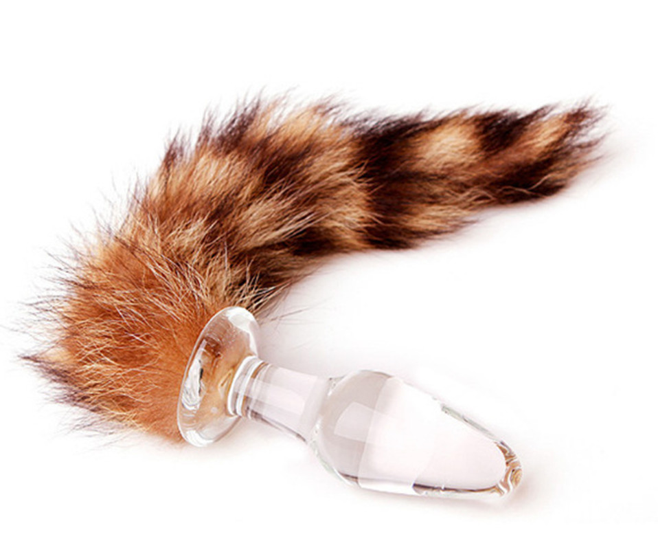 Crystal Glass Faux Racoon Dog Tail Butt Plug Anal Toy for Women